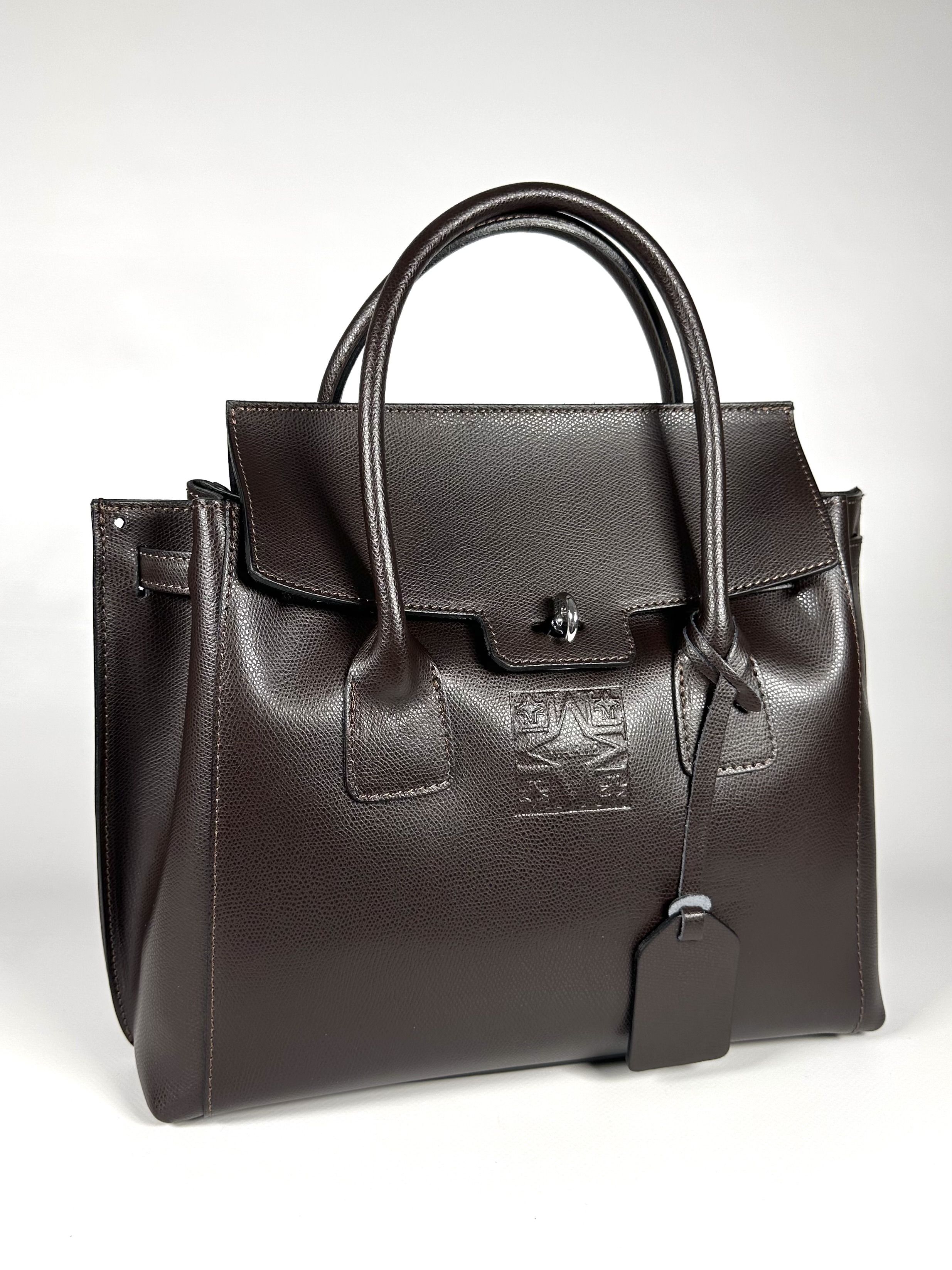 Женская темно-коричневая форматная сумка из натуральной толстой кожи Vera Pelle 022032