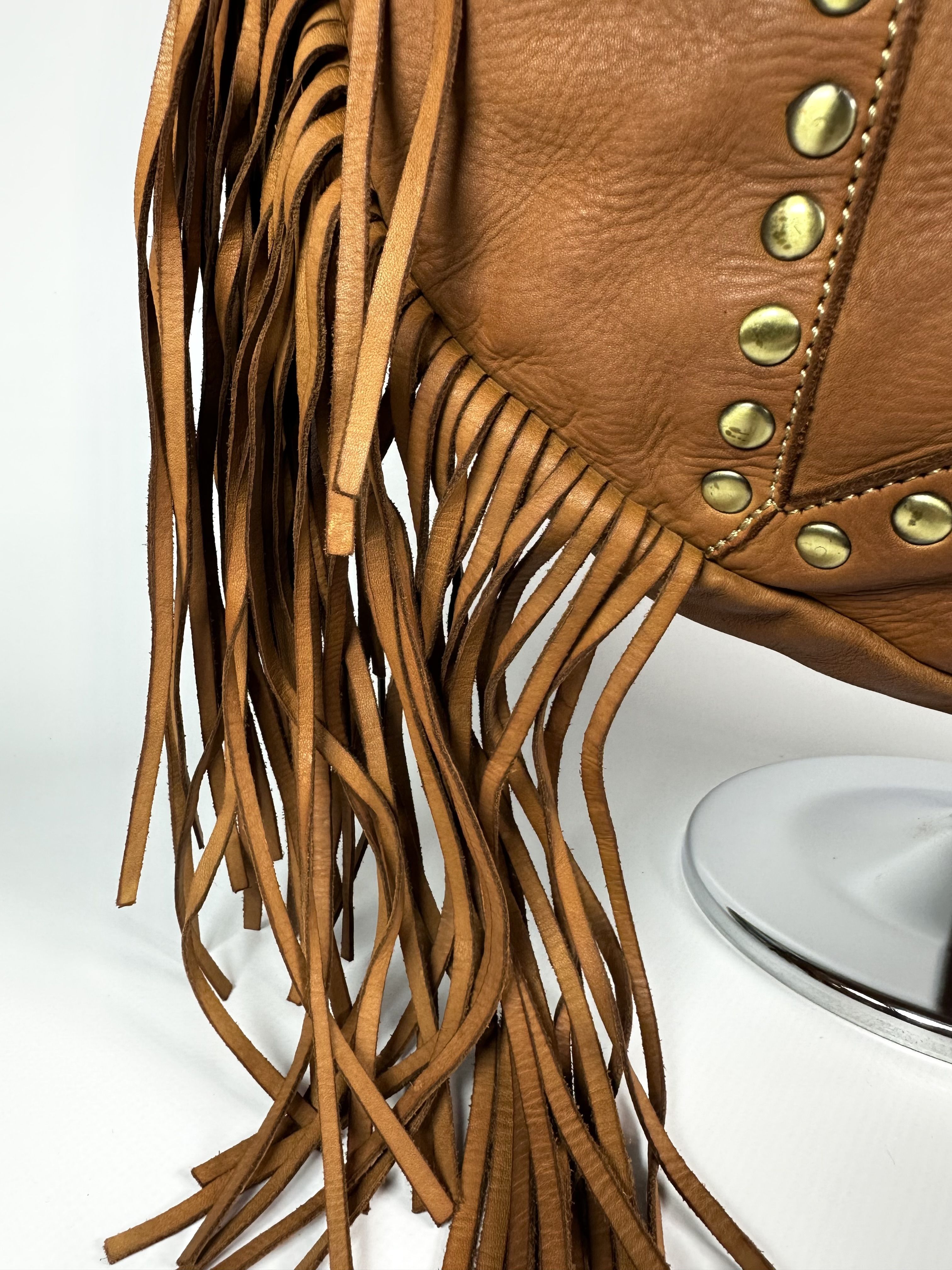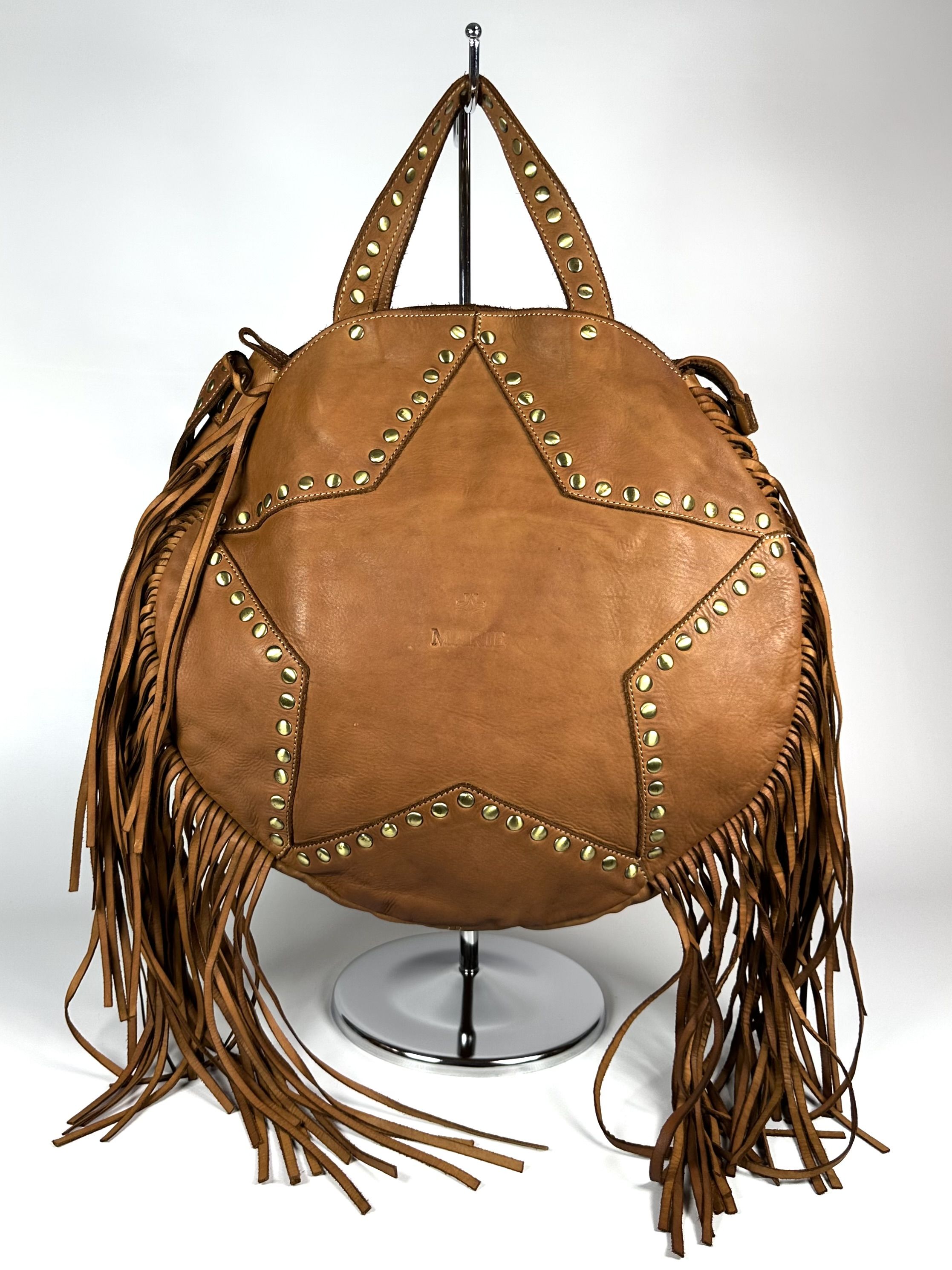 Женская сумка из натуральной вареной кожи с бахромой и заклепками Vera Pelle M&Marie 026870 CAMEL