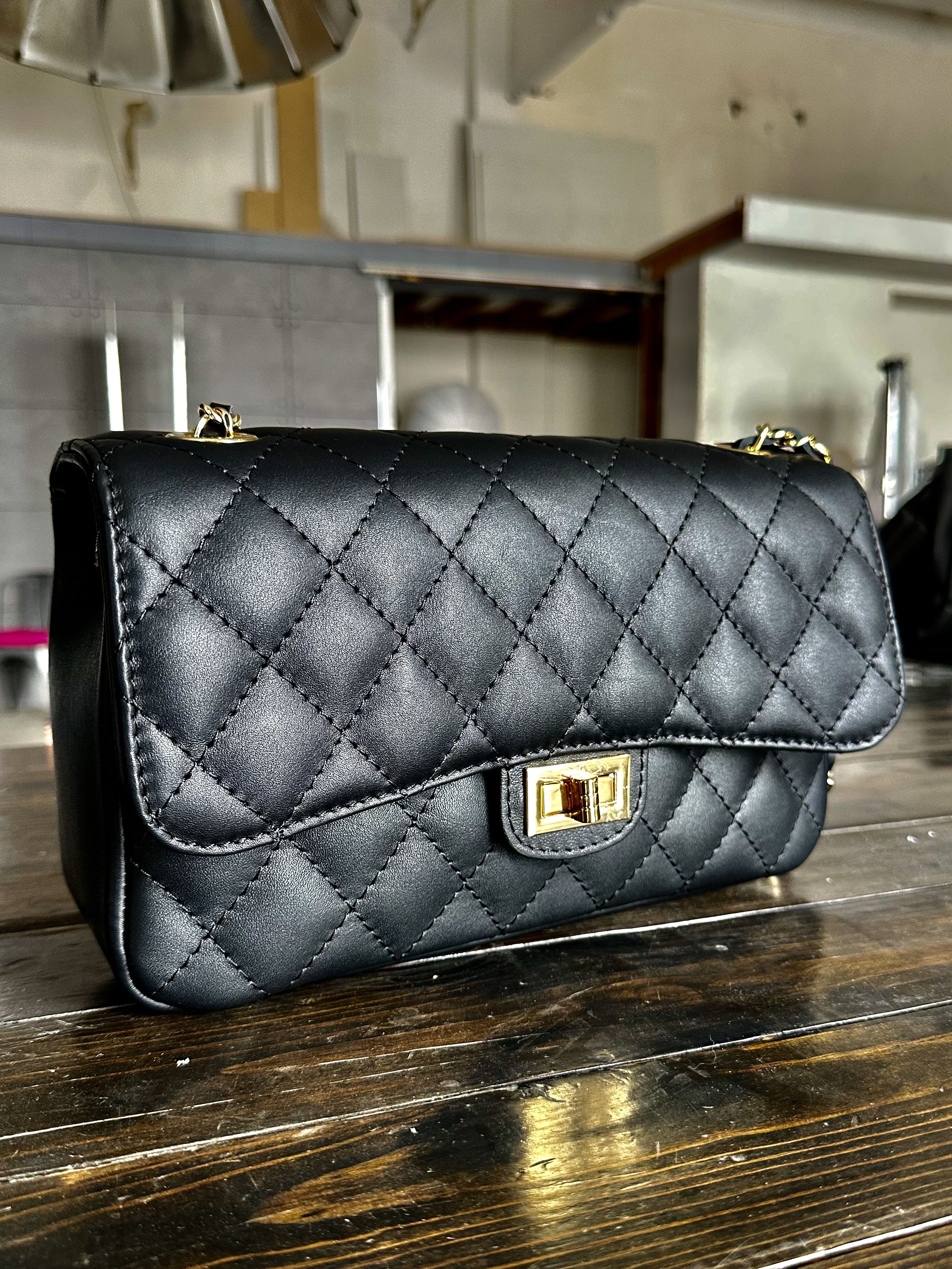 Женская сумка из натуральной кожи Vera Pelle на цепочке, цвет черный. Арт. 02325