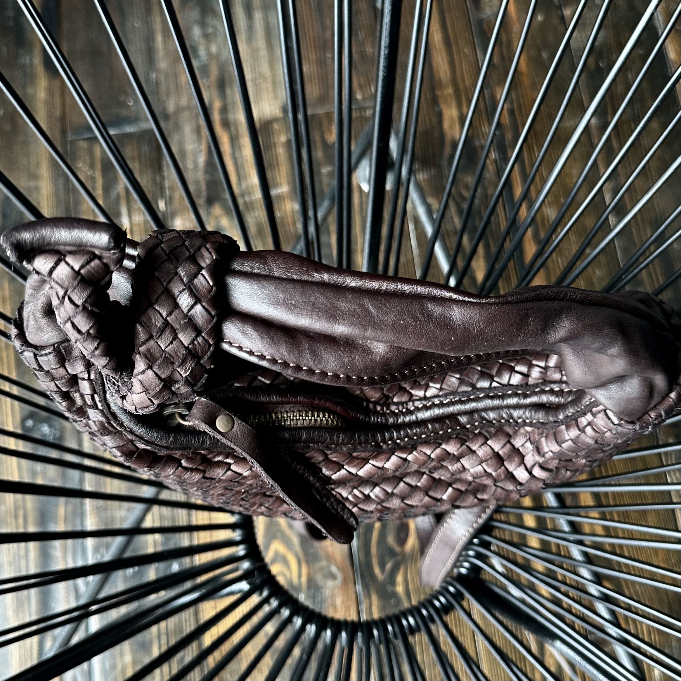 Маленькая кросс боди сумка vera pelle выполнена при помощи плетения полосок натуральной кожи.