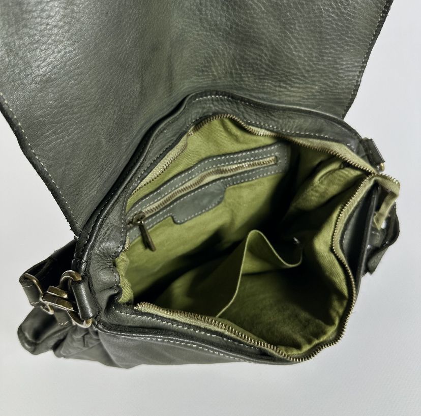 Женская наплечная сумка из натуральной винтажной кожи Vera Pelle темно-зеленая 025811
