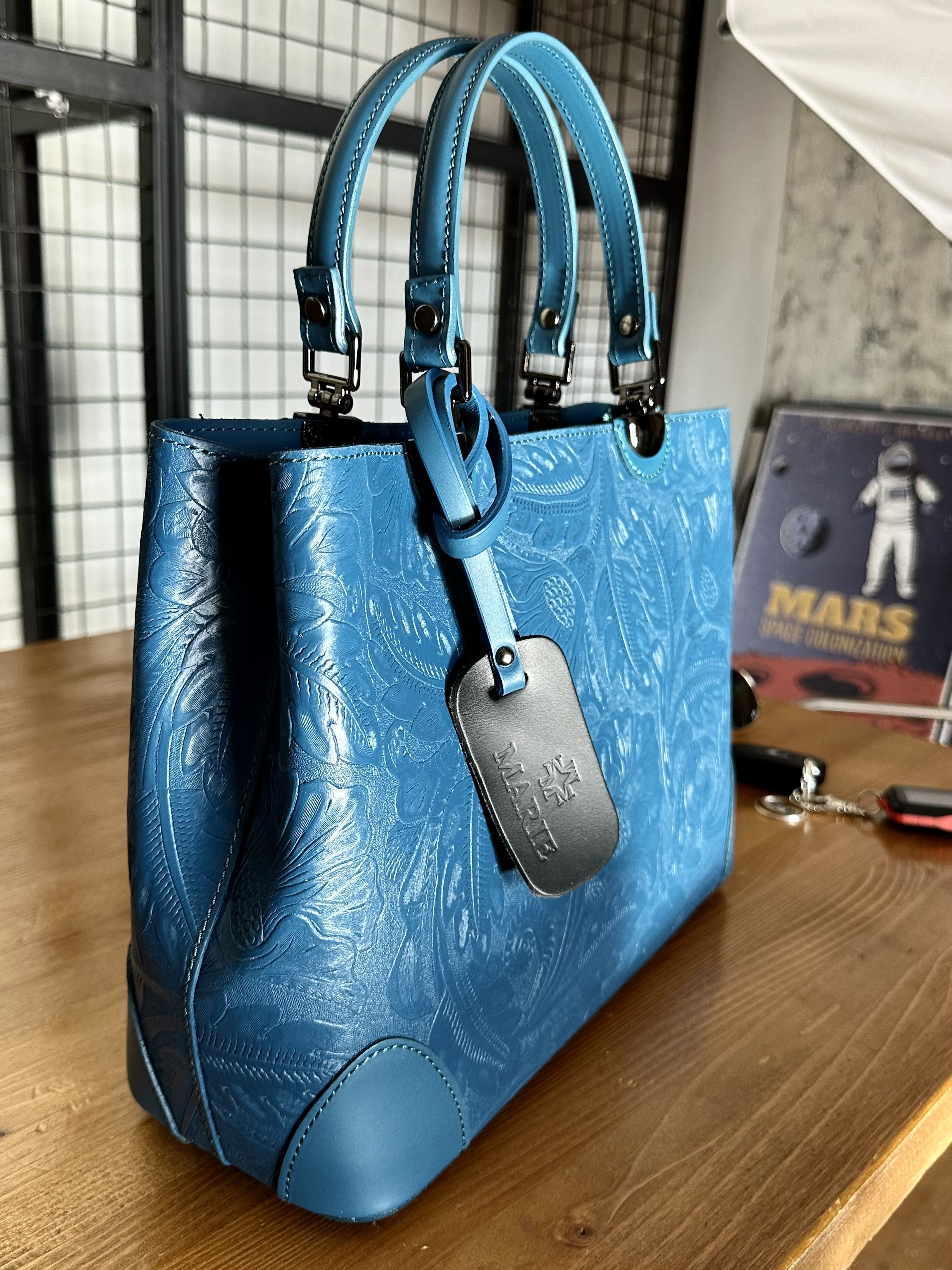 Женская форматная сумка из натуральной кожи, цвет морская волна, Vera Pelle. Арт.026809