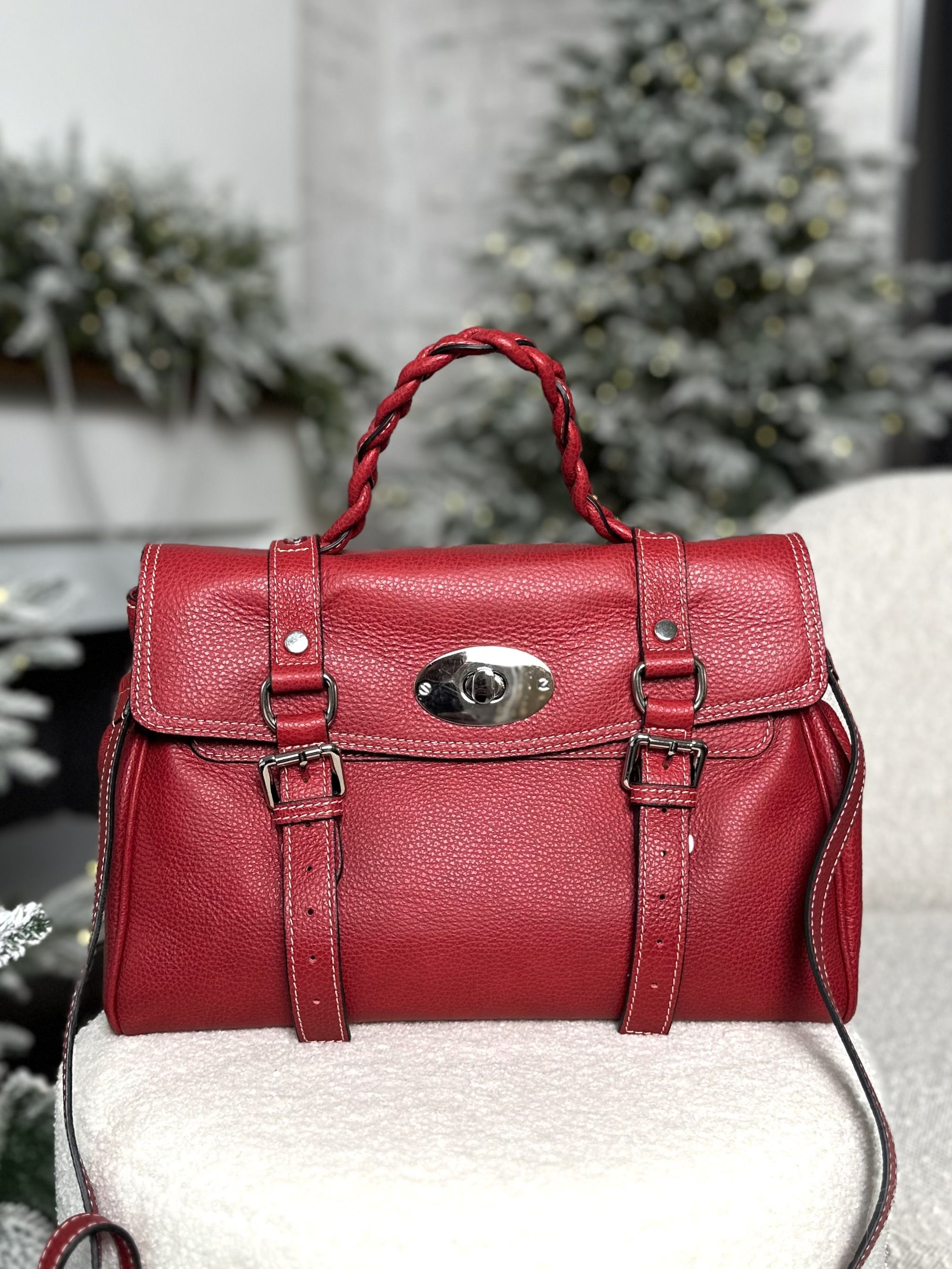 Женская сумка портфель из натуральной кожи красного цвета, Vera Pelle Italy. Арт. 024585